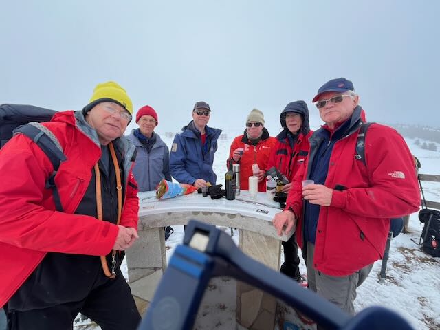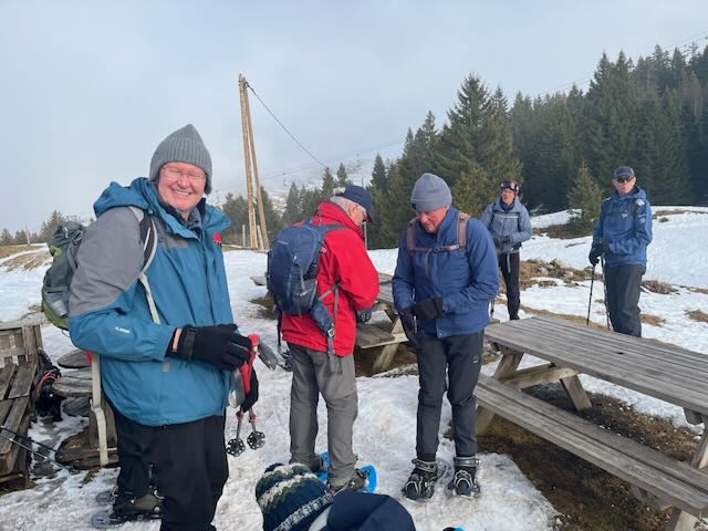 An easy drive back to Divonne was accomplished before 17.00. The walk was not particularly long (5km, 300m deniv.) even for Section B but your author’s legs reminded him that evening of the greater physical demands of snow shoeing across variable snow compared to walking. At least among Sections B and K9, the consensus was that this was an excellent outing and many thanks were due to the organiser given his thorough knowledge of the logistics, the terrain, the route etc. Actually, thanks to Mark Warren for setting up the table and Peter T and many others for explaining the routes and logistics to me.