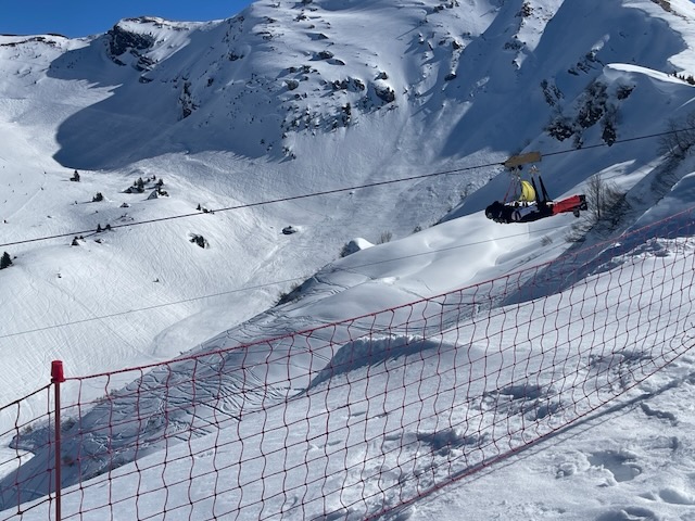 The afternoon skiing session was short, sunny and slushy in the spring snow (in February?). We stopped en route to watch some crazies take the “Fantasticable” way down the mountain from Rochasson, a spectacular zip wire measuring over 1.2km in length where speeds of over 100Km/h can be reached. Definitely a brown run! Meanwhile, back on the piste, tired legs, some objecting more than others, saw us back down to the car by 4pm and an early getaway to avoid the Lausanne rush hour which habitually builds up from 5pm onwards.