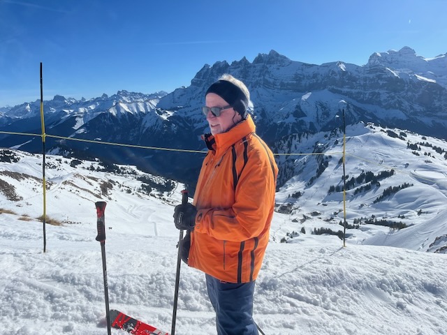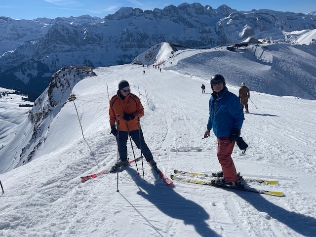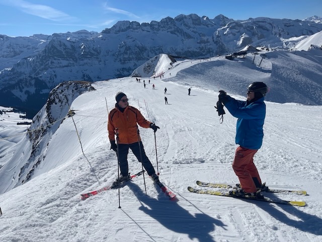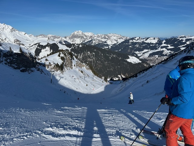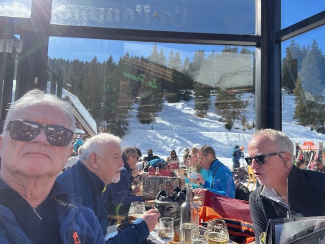 Richard soon showed his skiing pedigree and Ralph’s knee was not yet objecting, so we tore up some pistes before stopping for a sunny coffee in Les Brochaux.