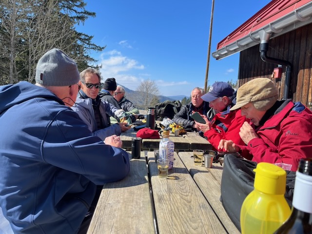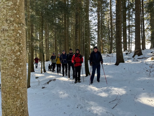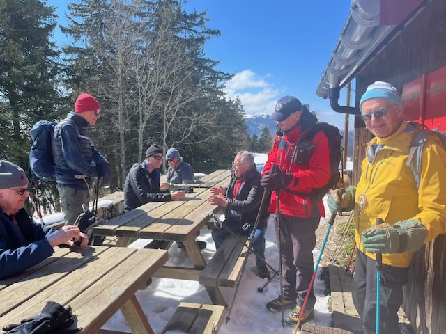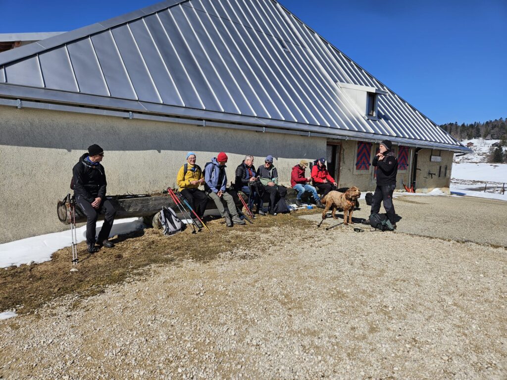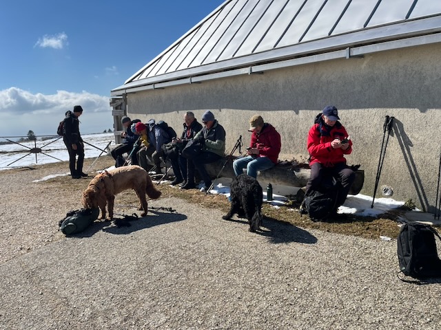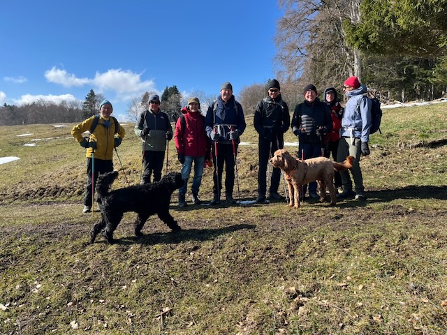 So – nine of us with two dogs Kobie and Plato, met up at Tancouez (1057m) at W3W///udder.able.tilts – which as Rudolf Staehelin found is a location in Canada as well as near St Cergue. Happily he arrived safely at the parking with Joe Kutzin who accompanied his dog Plato (aged 12). I cannot recall Joe out on hikes before, albeit he is a ski regular and has attended the main club lunches – welcome Joe. Also attending the regular crew – RichardSay, Philip, Stephen, DavidC, Nathan, PeterSt and me PeterT.