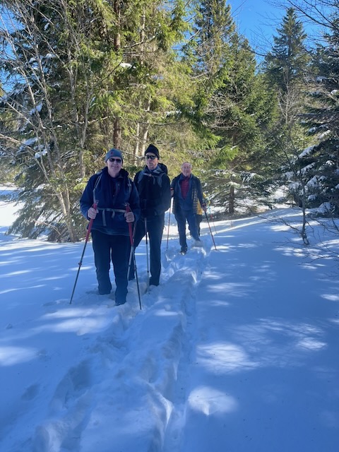 Calling ahead to warn Maria that we would be likely arriving closer to 1 pm than 12.30pm, I hoped that Robert would be OK on his walk up from La Givrine. Philip decided not to branch out on his own, but stayed with us, as the snow was becoming deeper with not a lot of sign of activity on the trail ahead.