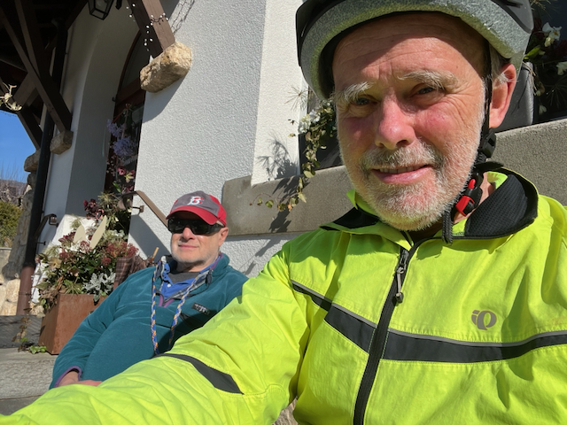 That good snow high-up had kept other regulars including our BLeader and Mervyn out on their planks. A few other apologies came, including from Mark2ts and PeterD. Bill in the USA was amazed that we were biking so early. In fact in 2023 we had a GIN bike ride on 23 Feb, but more it is usual that our rides start in March.