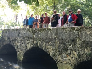 It is always sad saying goodbye to good friends, and this time it was to say au revoir to our good walking buddy and organiser Alan Baker. Unsurprisingly, many members of GIN, and not only those in the walking group, showed a wish to join in all or part of the day’s activities and others sent their regrets. The planned walk took place in Versonnex, France and consisted of about three kilometres around the “mighty” Oudar, a tributary of the Versoix. In view of the limited parking in Versonnex, most walkers met in Divonne for car sharing to the parking by the church in Versonnex where they joined the others, and in all 23 walkers set off at 10h40.